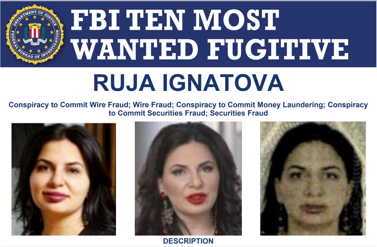 Ignatova remains at large and on the Ten Most Wanted list. The FBI is offering a $5 million reward for info leading to her arrest and/or conviction.