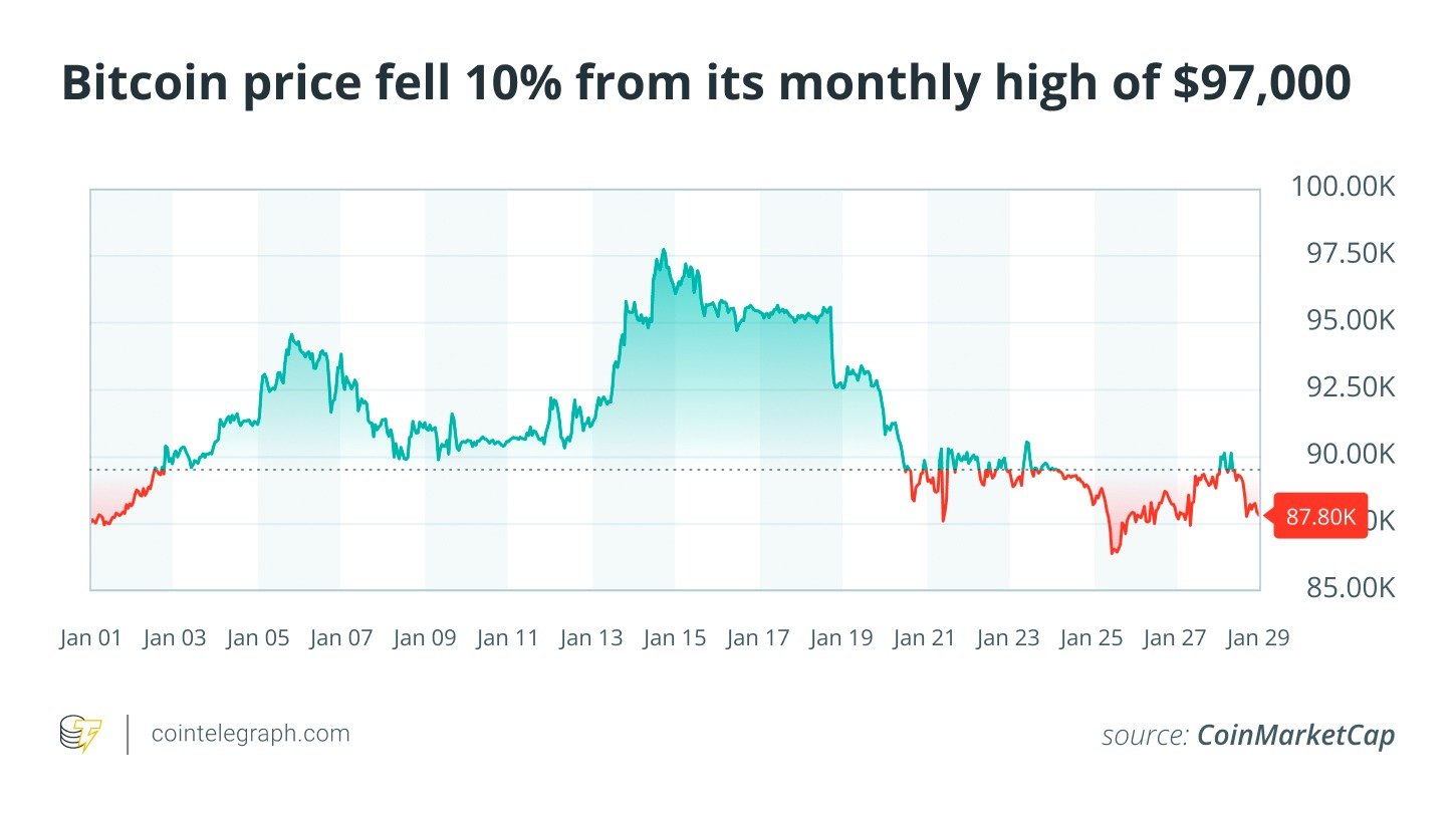 Geopolitical concerns, namely US President Donald Trump’s supposed aspirations to acquire Greenland, have global investors wary. Bitcoin’s price fell nearly 10% from a monthly high of $97,000.