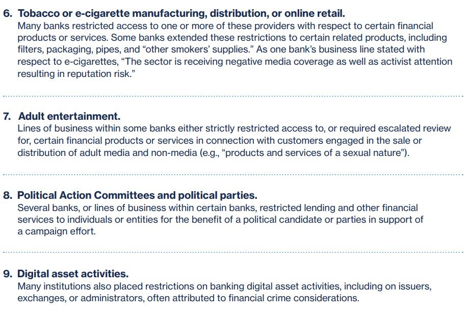 Similar banking friction patterns also emerged in the US. Lawmakers and the industry have invoked the term “Operation Chokepoint 2.0” to describe the federal regulators’ informal guidance that discouraged banks from maintaining relationships with crypto companies.