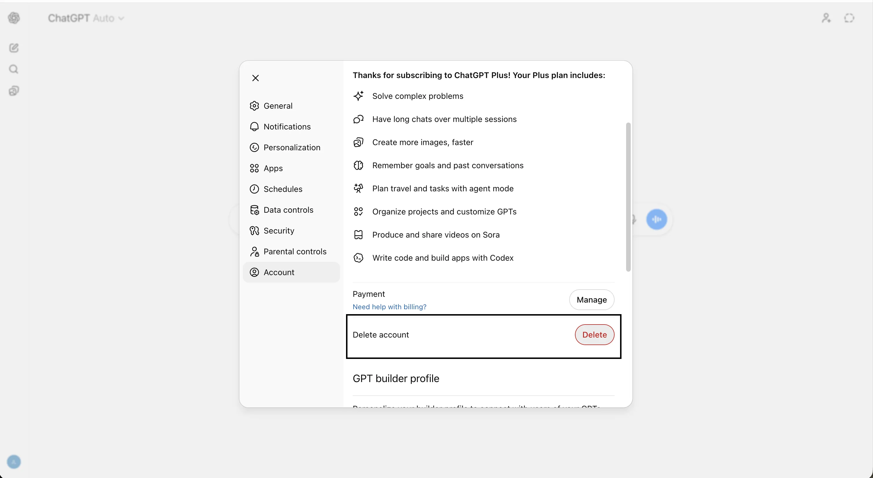 This is where most users make a costly mistake. If you subscribed to ChatGPT Plus directly on the web, canceling through OpenAI stops billing. But if you subscribed through Apple’s App Store or Google Play, deleting your OpenAI account does not cancel that mobile subscription. OpenAI’s own help documentation states this explicitly: You must cancel in the App Store or Play Store separately to stop future charges.