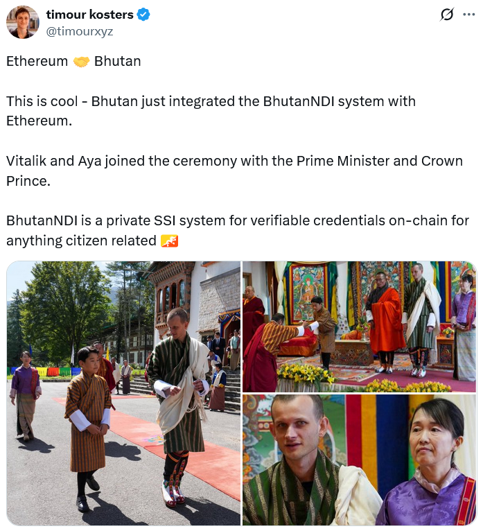 The integration with Ethereum has been completed, while the migration of all resident credentials is expected to finish by the first quarter of 2026, according to Ethereum Foundation President Aya Miyaguchi, who joined Ethereum co-founder Vitalik Buterin at the launch ceremony with Bhutan’s prime minister, Tshering Tobgay, and crown prince, Jigme Namgyel Wangchuk.