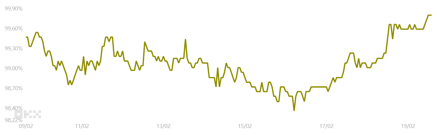 US-listed Bitcoin ETFs have seen $910 million in total outflows since Feb. 11, which likely caught bulls off balance, especially as Bitcoin traded 47% below its all-time high while gold prices hovered near $5,000, up 15% in just two months. Similarly, the S&P 500 index sat only 2% below its own all-time high, indicating that this risk-aversion is largely restricted to the cryptocurrency sector.