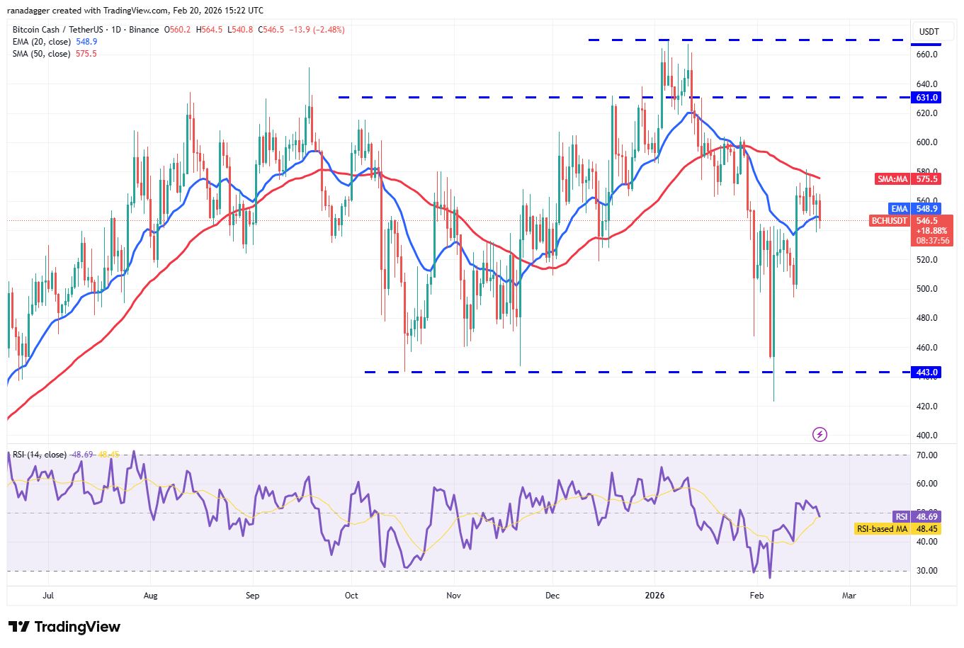 Bitcoin Cash (BCH) has slipped below the 20-day EMA ($548), indicating that the bears are attempting to take charge.