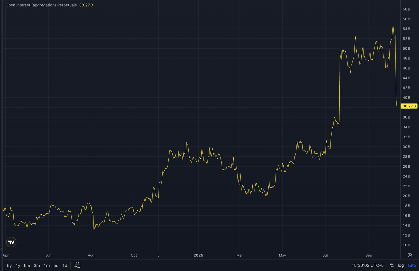 A sharp reduction in aggregate open interest highlights the severity of the $20 billion in leveraged liquidations and highlights traders’ reluctance to re-enter the market.