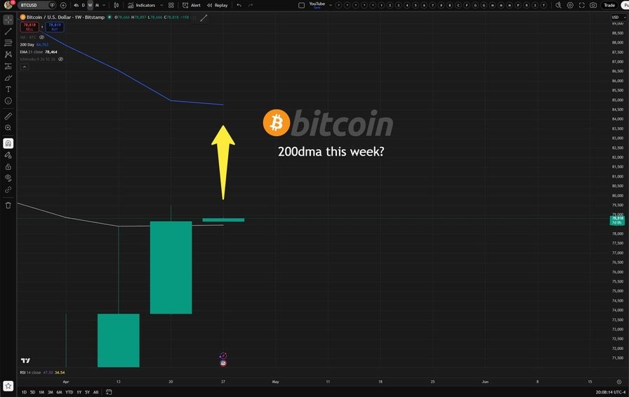 “$84.5K (200DMA) looks like the next stop this week.”