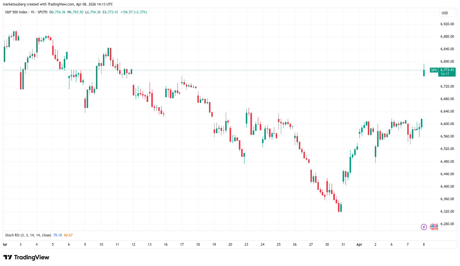 News of a minimum two-week ceasefire between the US, Israel and Iran sent risk assets higher in an instant, with the S&P 500 up by more than 2.5% at the open.