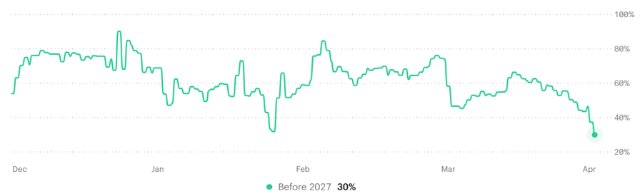 Odds of crypto market structure legislation approval by 2027. Source: Kalshi