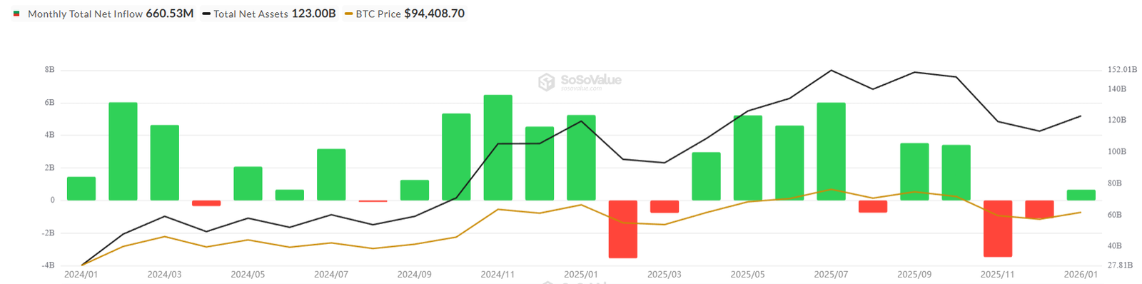 Bitcoin ETFs have raked in a total of $660 million in net inflows so far in 2026 as demand for the funds continued to fluctuate.