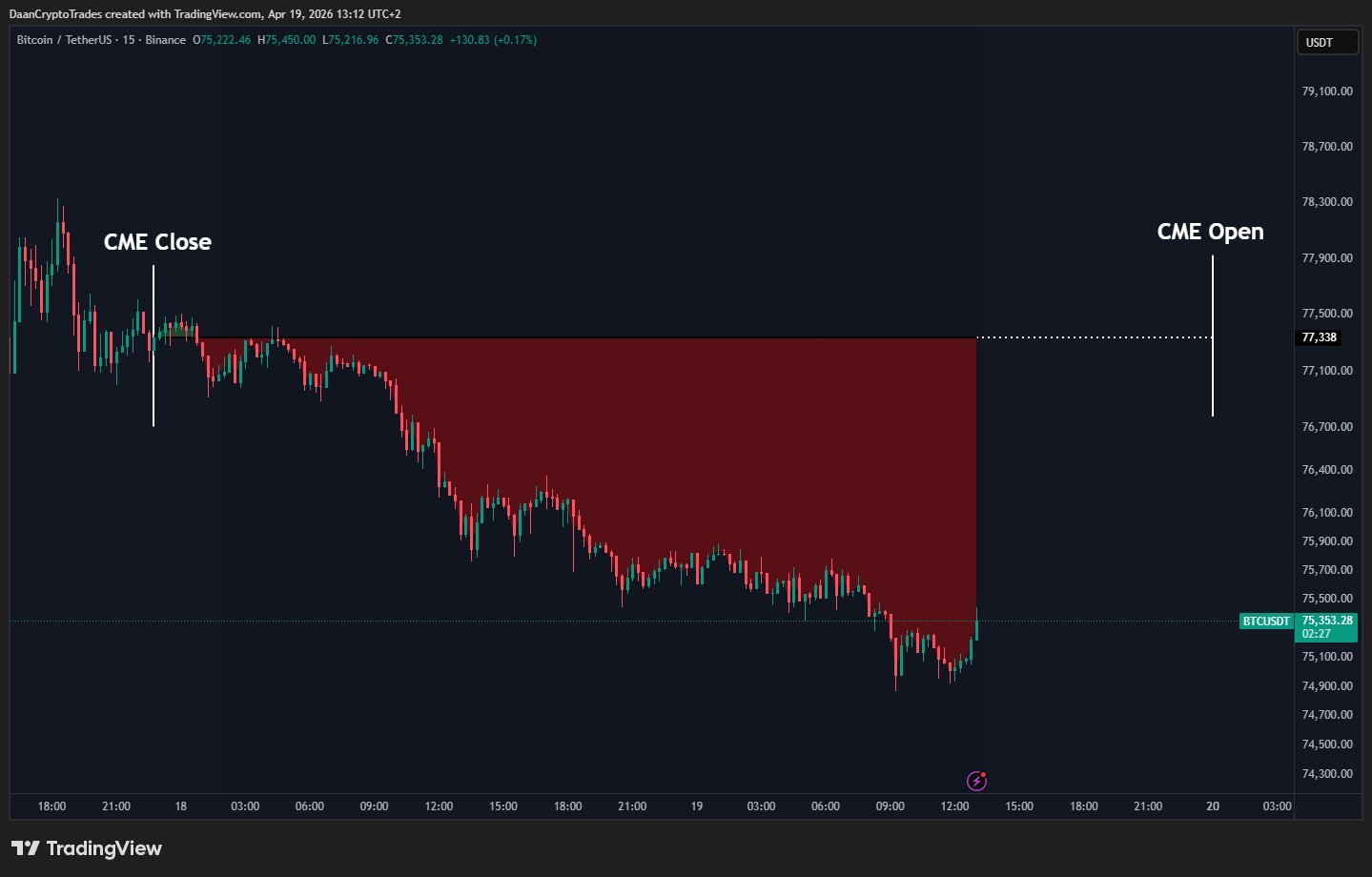 Continuing, trader Daan Crypto Trades eyed a potential gap in CME Group’s Bitcoin futures market opening as a result of the weekend comedown.