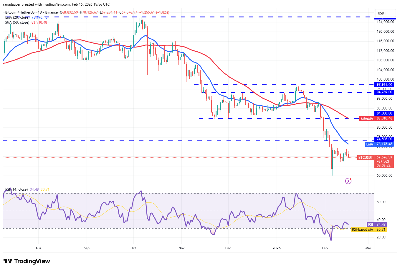 Buyers will have to drive the Bitcoin price above the breakdown level of $74,508 to signal that the bearish momentum is weakening. The pair may then surge toward the 50-day simple moving average (SMA) ($83,910), where the bears are expected to mount a strong defense.