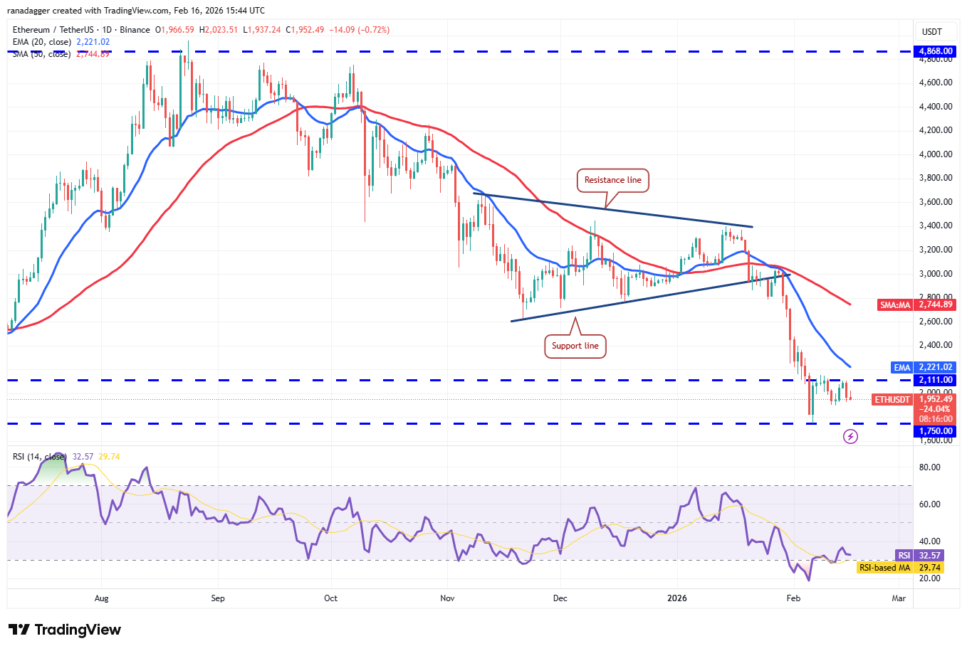 Ether (ETH) once again turned down from the $2,111 level on Sunday, indicating that the bears are fiercely defending the level.