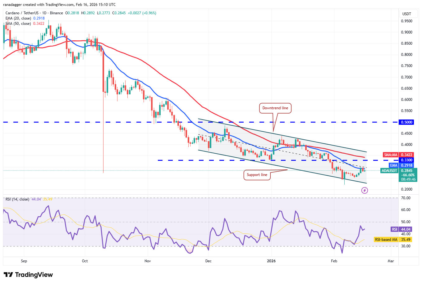 Cardano’s (ADA) relief rally reached the 20-day EMA ($0.29) on Saturday, which is expected to act as a stiff hurdle.
