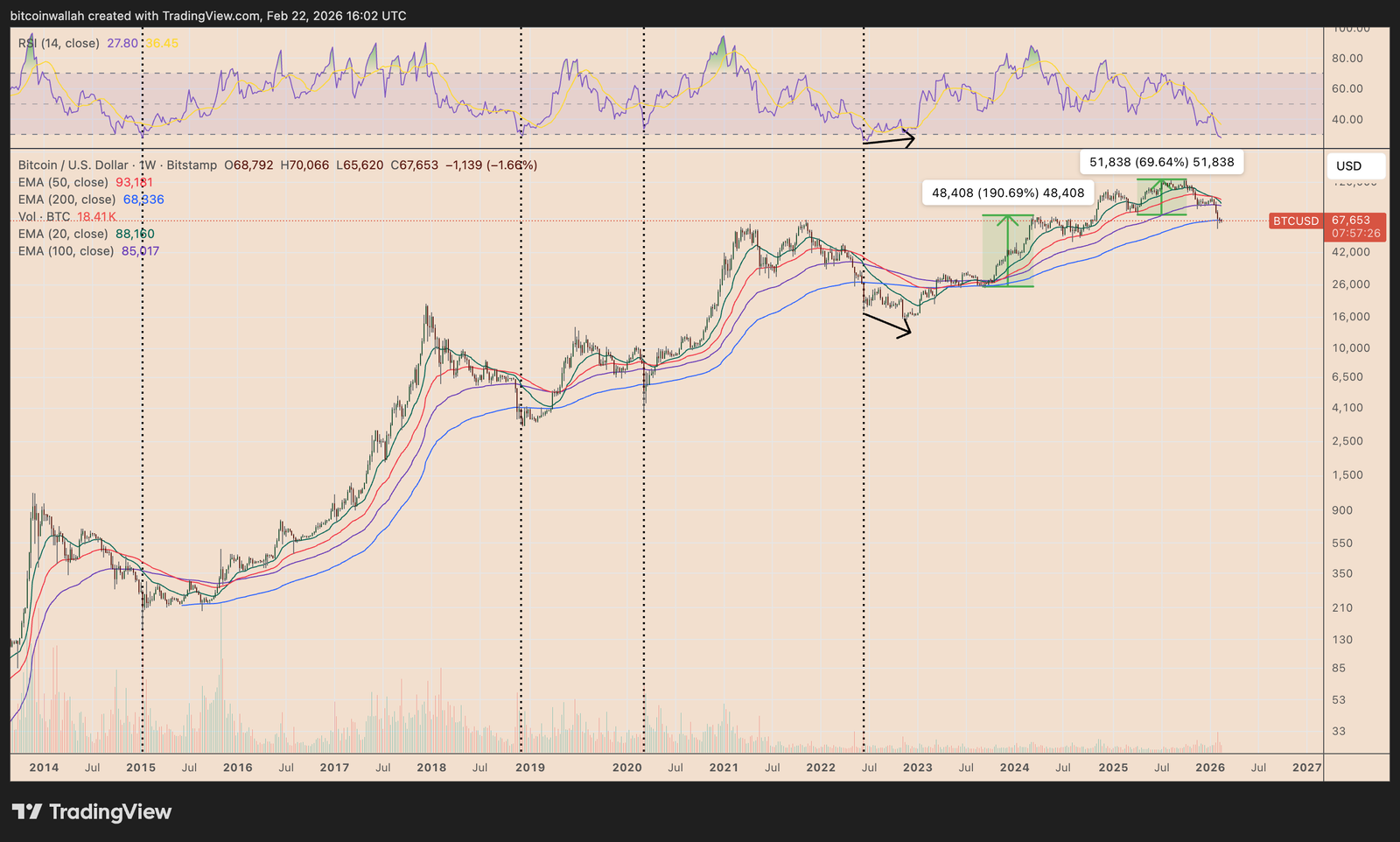 The last time Bitcoin traded around this moving average during deep sell-offs (in 2015, 2018 and 2020), it eventually marked the end of the downtrend and the start of a new recovery phase.