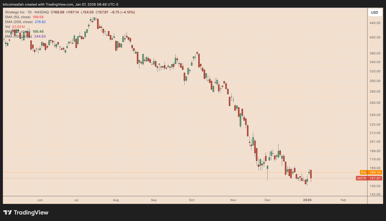 Under the new rules, this automatic buying no longer applies, reducing a key source of passive demand for Strategy’s stock.