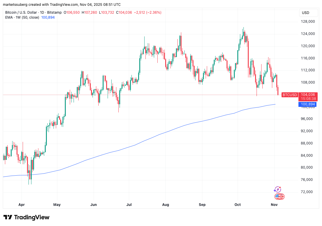 Data from Cointelegraph Markets Pro and TradingView tracked new lows of $103,732 on Bitstamp, with the price down over 2% Tuesday.