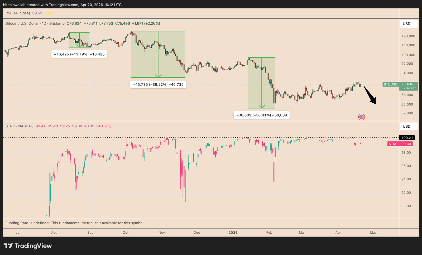 For instance, on average, BTC’s price has dipped by roughly 30% when STRC traded below its $100 par value.