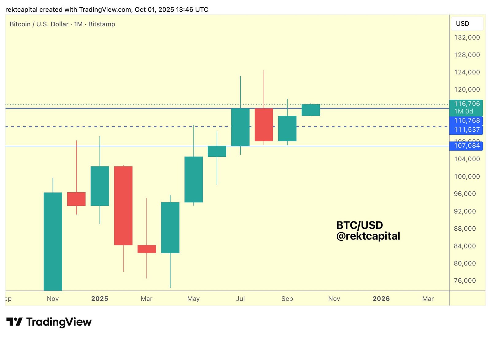 “Bitcoin is trying to breakout from its Monthly Range already on the first day of the new month of October,” popular trader and analyst Rekt Capital summarized in his latest commentary on X.