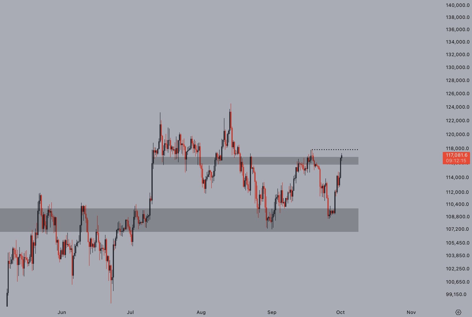 Bitcoin starts October with range breakout attempt