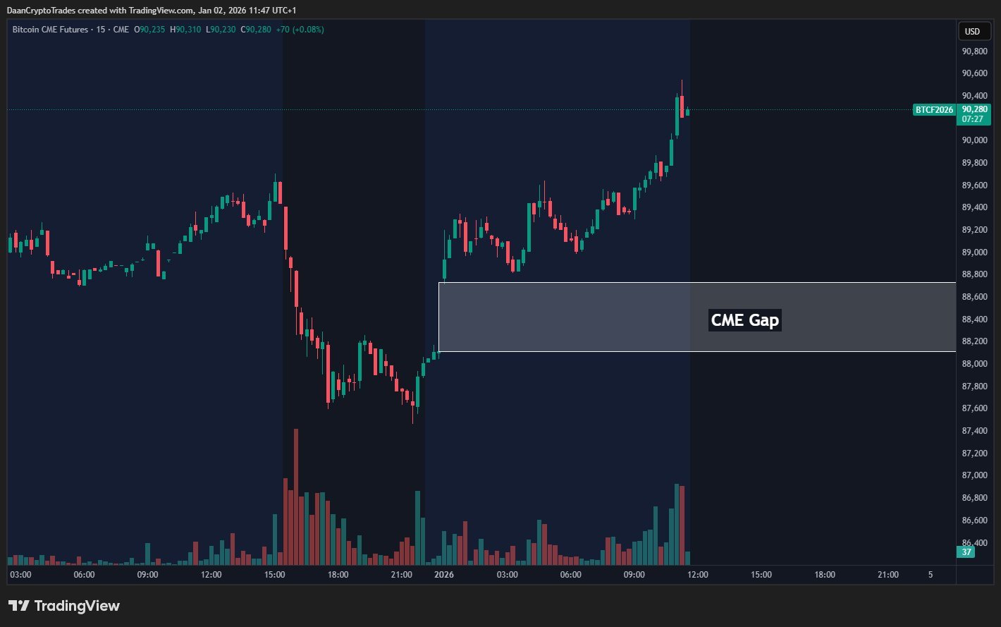 Bitcoin (BTC) approached $90,000 into the first Wall Street open of 2026 with a new CME futures gap in focus.