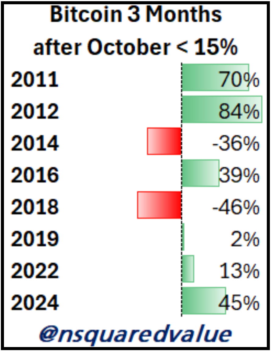 “The 3-month return for Bitcoin after a weak October averages 11% (2016-); for strong Octobers, it’s 21%.”