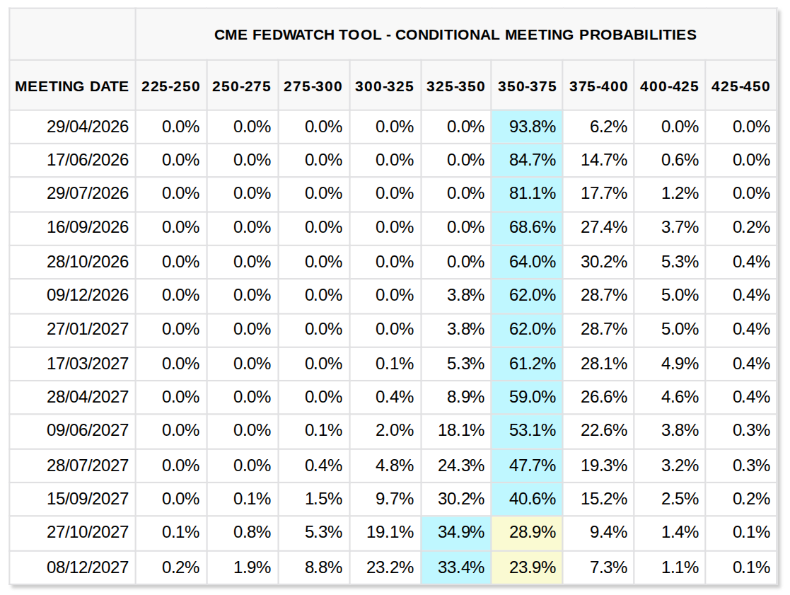 Federal Reserve target rate probabilities (screenshot). Source: CME Group FedWatch Tool