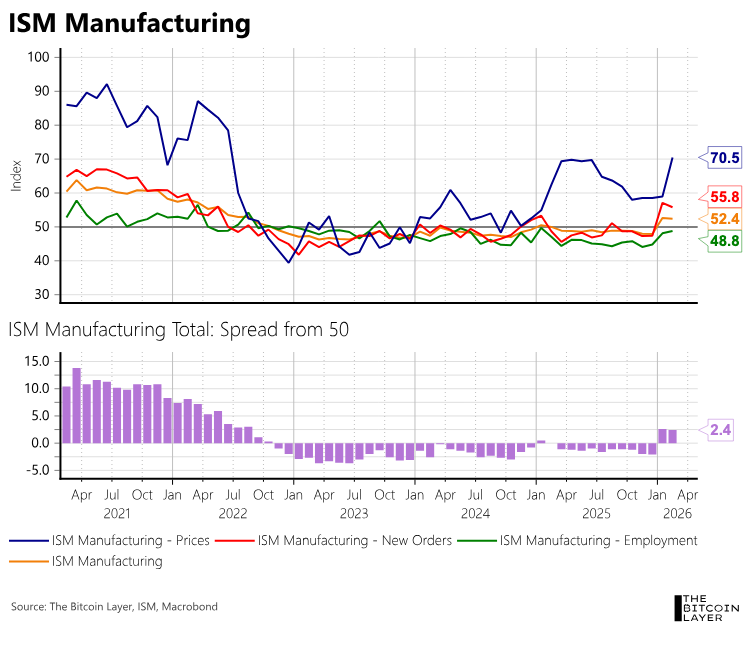 “Bitcoin trading well on strong US manufacturing this morning and elevated prices paid,” Nik Bhatia, founder of global macro research company The Bitcoin Layer, commented.