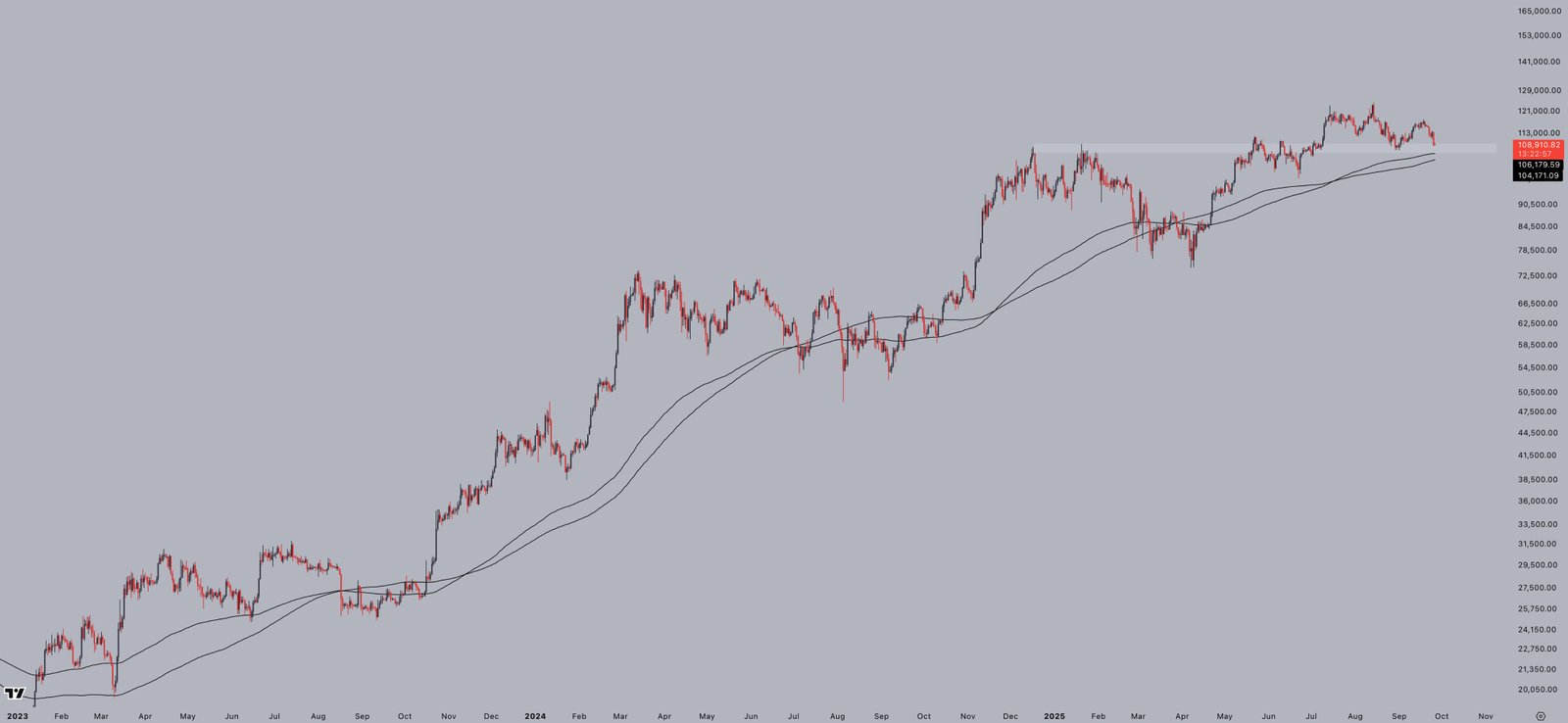 As of Friday, this EMA price floor was around the $104,000-106,000 area.