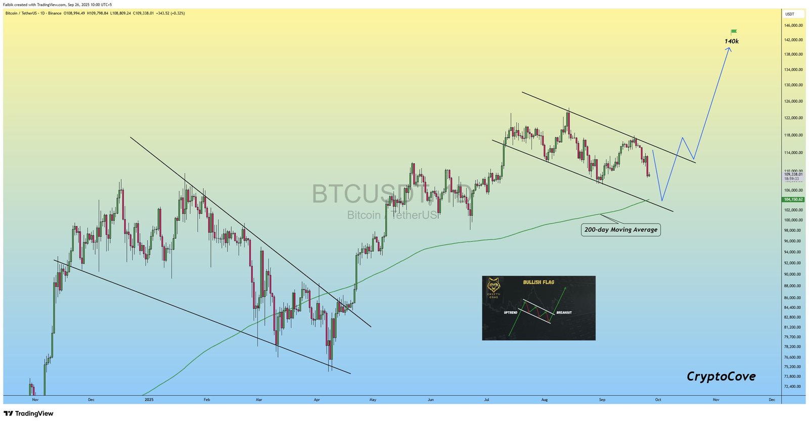Faibik points to the emergence of a potential bull flag. In this case, a decisive move above the $113,000 resistance zone could confirm the breakout, opening the door for a rally toward $140,000 in the months ahead.