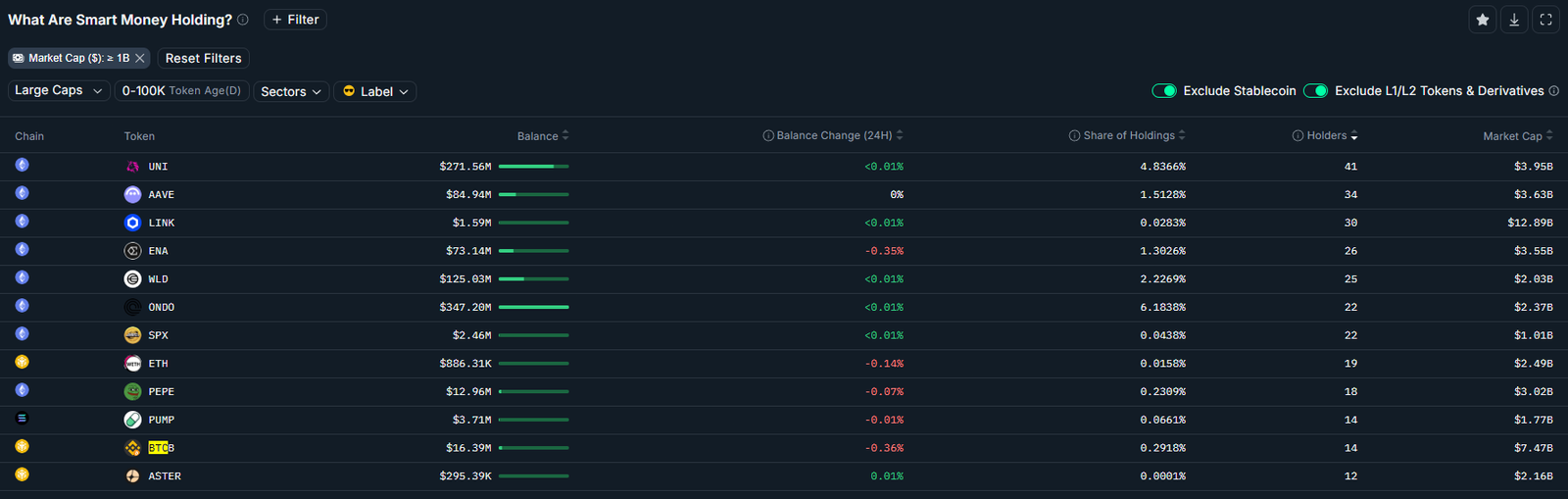 Smart money traders, holdings. Source: Nansen
