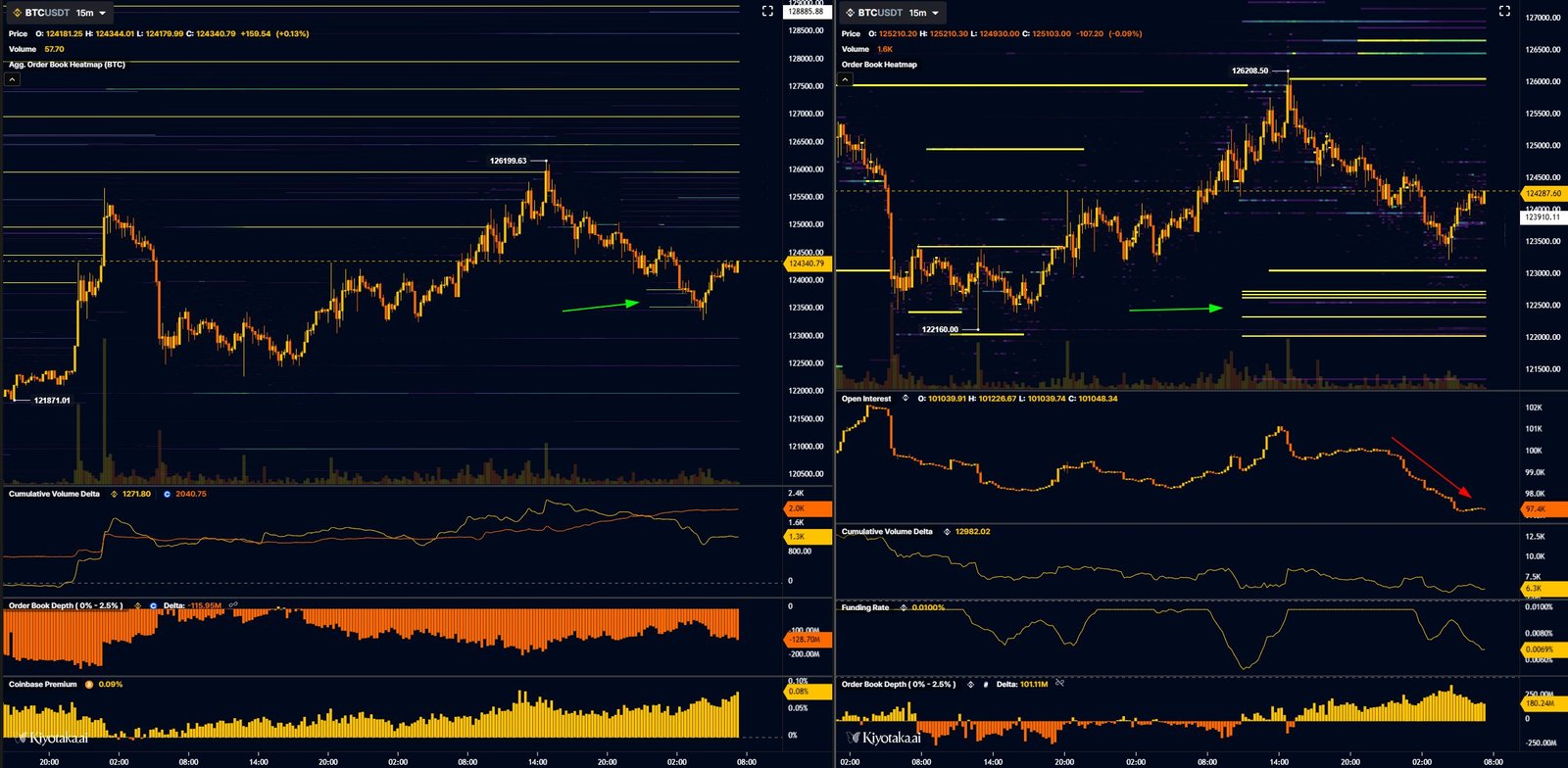 “Passive selling on coinbase & taker selling on binance spot led the bleed back to $123.2K,” popular trader Skew explained in part of his latest analysis on X.