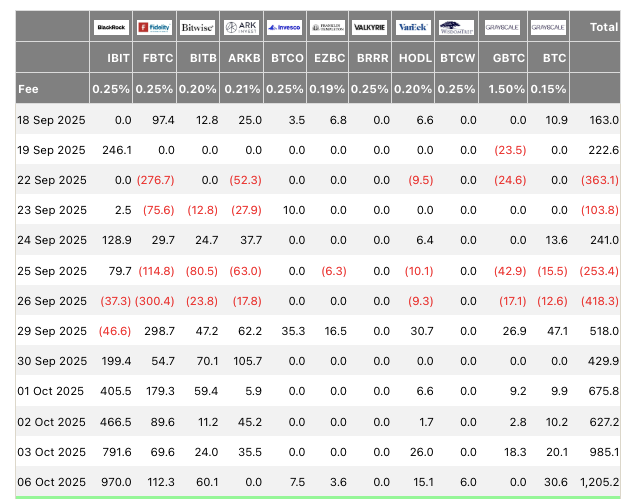 The largest institutional Bitcoin investment vehicles, the US spot Bitcoin exchange-traded funds (ETFs), posted around $1.2 billion of net inflows Monday — their second-highest daily tally.