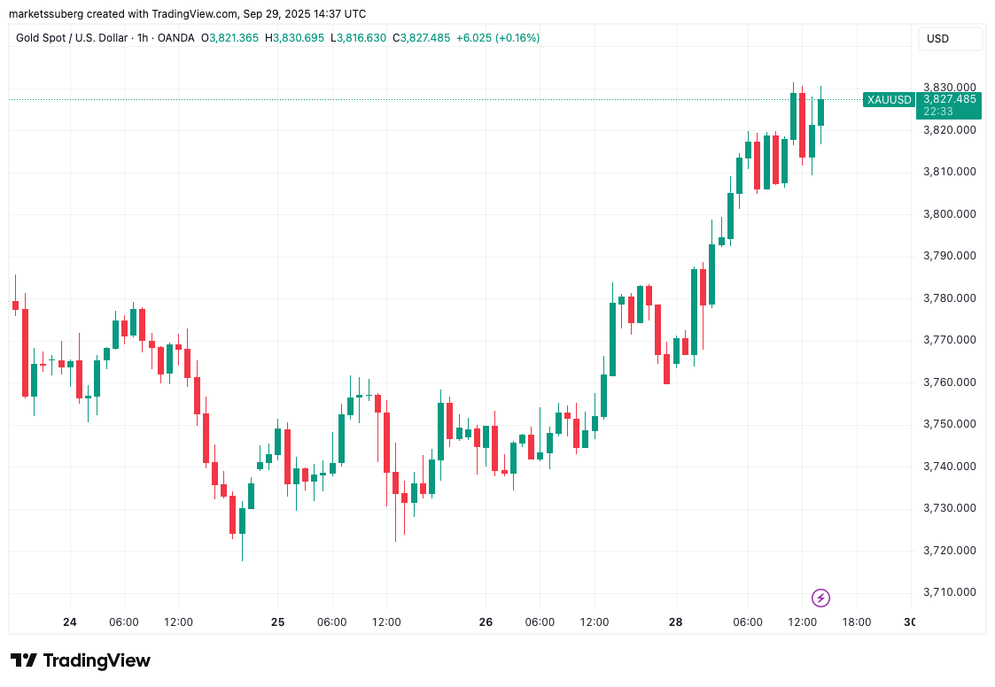 As gold consolidated after its earlier high of $3,831 per ounce, Bitcoin followed a bullish start to the week for US stock markets.