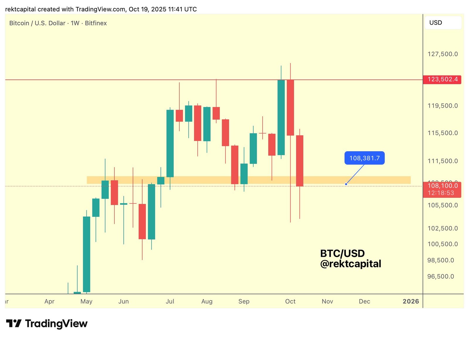 “Bitcoin is not far away from securing a positive Weekly Close above $108381 to preserve the historical Weekly demand area (orange), despite the downside wicks below it,” trader and analyst Rekt Capital said while uploading the weekly chart to X.