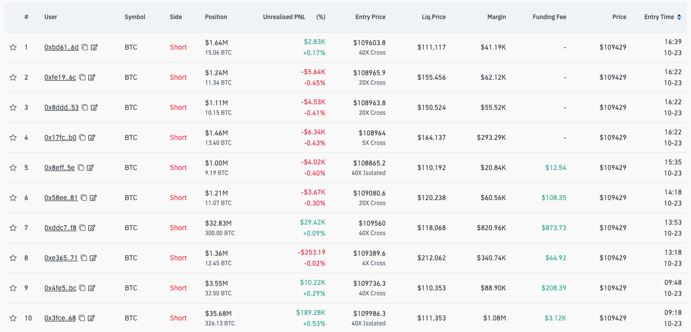Bitcoin whale short selection (screenshot). Source: CoinGlass