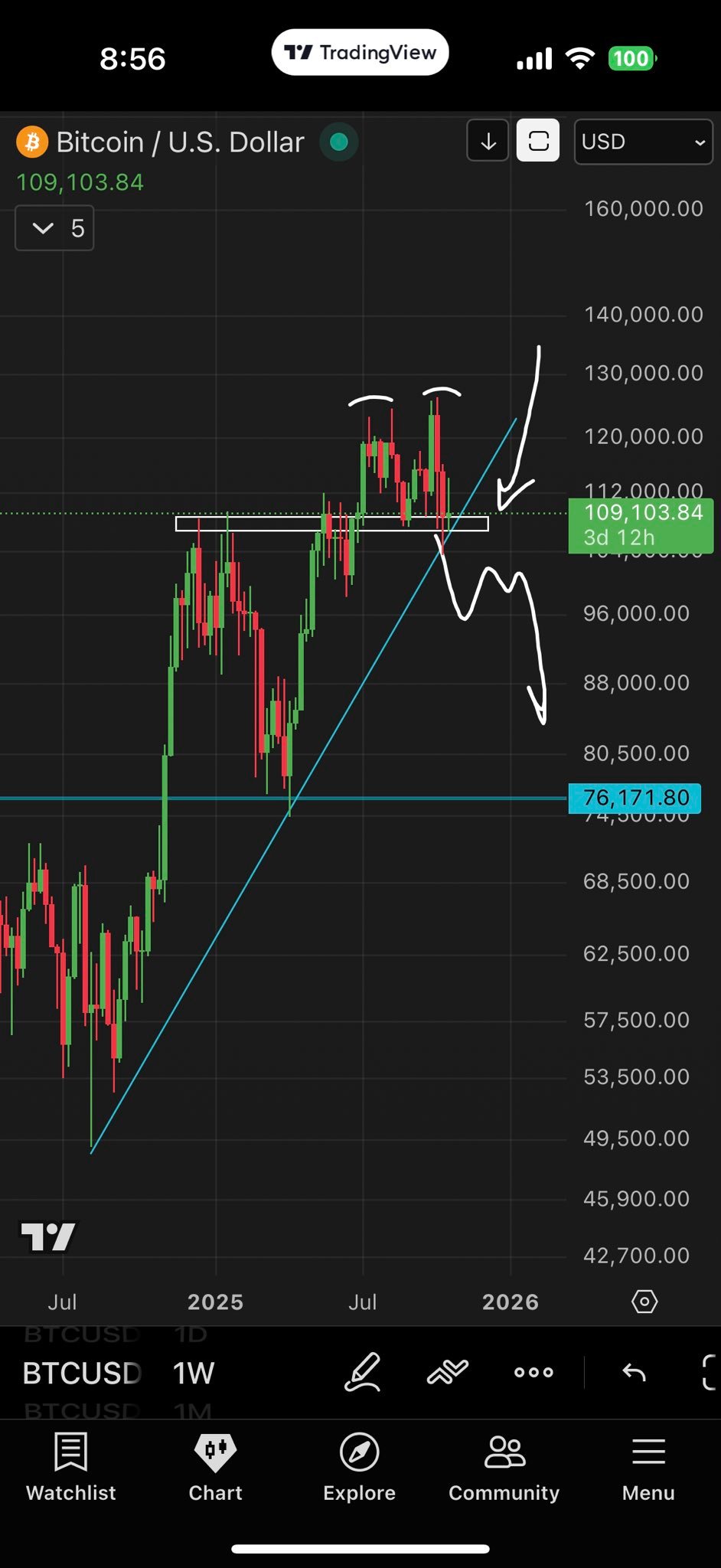 “So far we’ve held but I wanted to show that it’s not just a horizontal support, it’s a diagonal support for a near year and a half long uptrend,” he told X followers about the weekly chart.