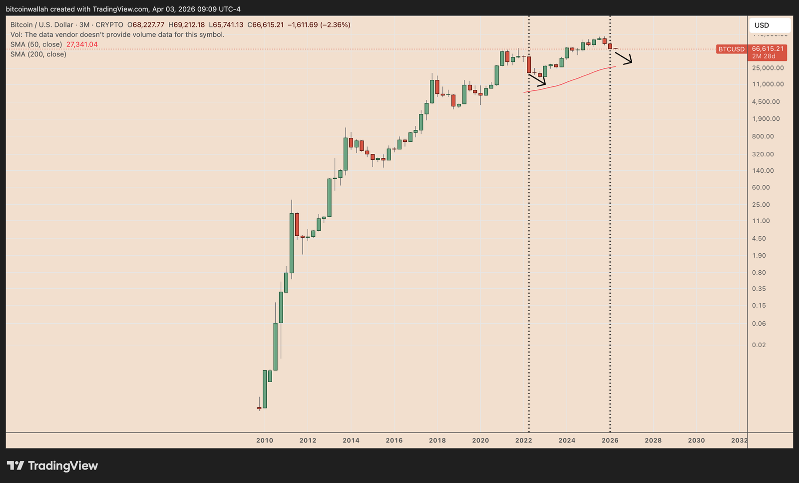 Therefore, whales and sharks are cutting their losses now because they expect the Bitcoin price to drop further as macro risks mount. This sentiment raises the odds of a 2022-like bear market, with a bottom in Q4 2026.
