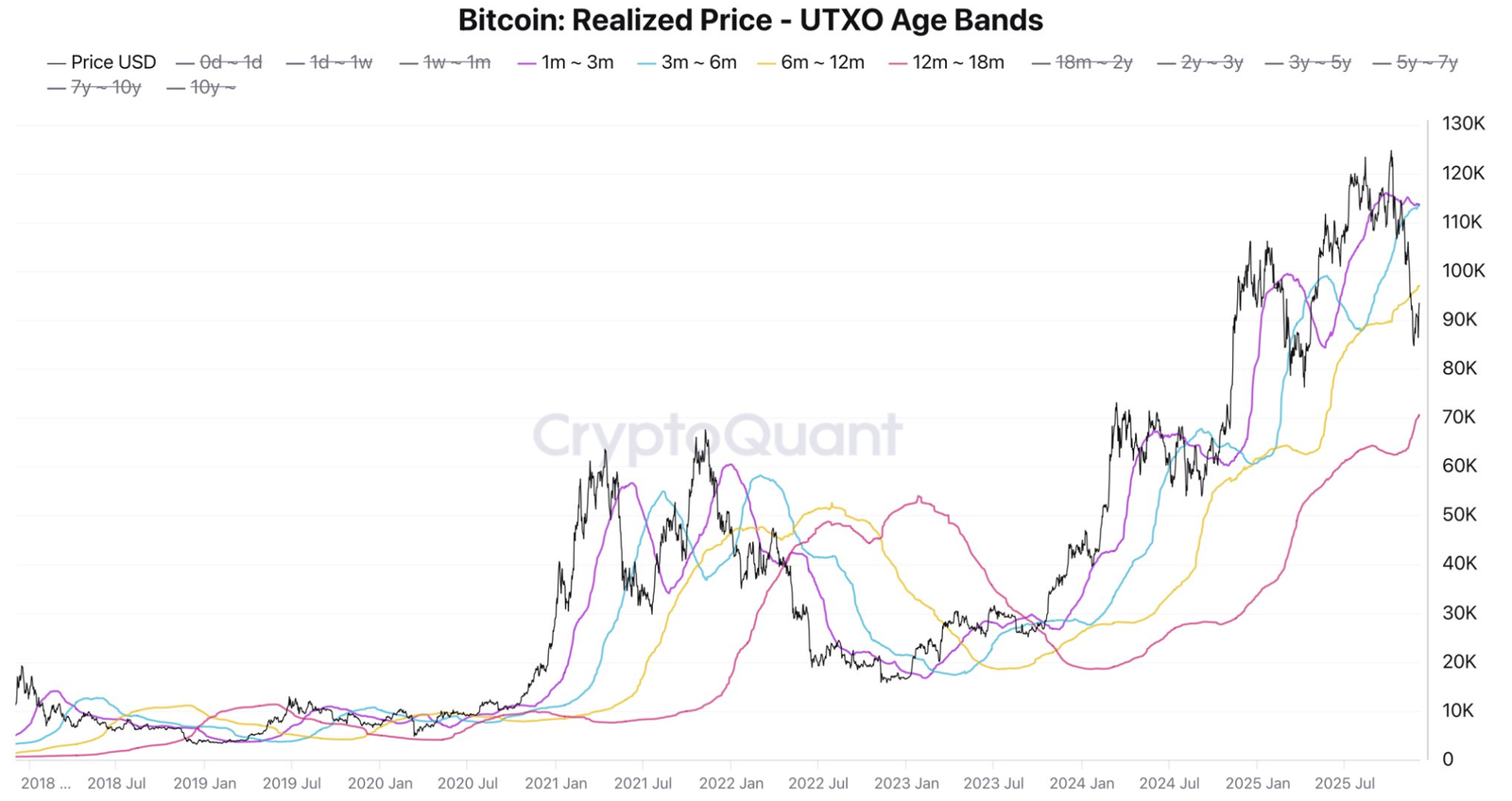 Data from CryptoQuant shows that the BTC/USD pair is trading below the average realized price (cost basis) of most age groups, signalling instability, according to CryptoQuant analyst Darkfost.