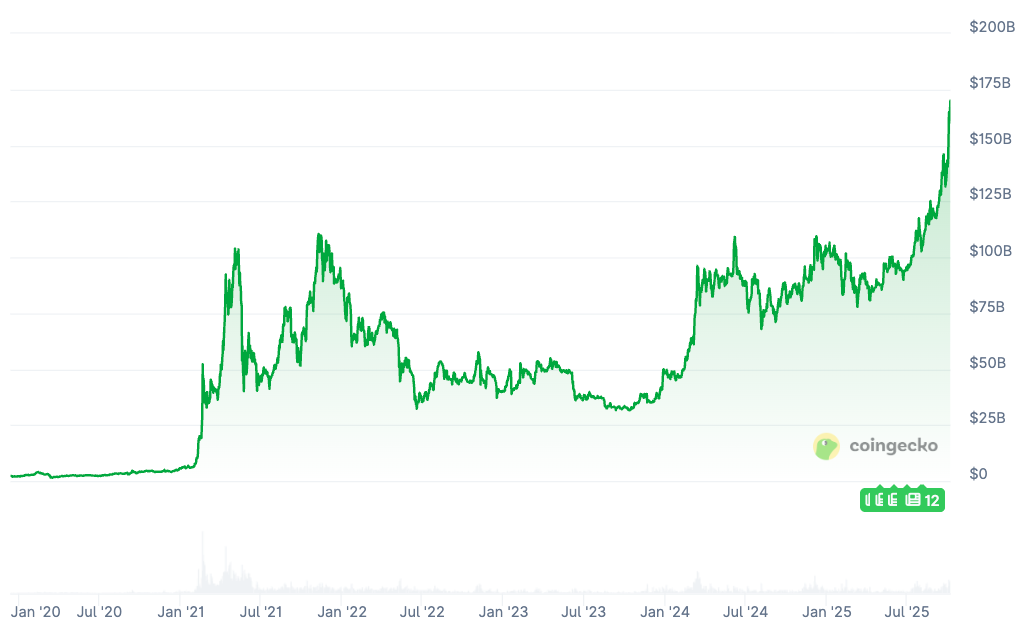 For comparison, it took BNB more than two months earlier this year to add a similar amount to its market cap, when its value stood at around $100 billion in mid-July — roughly the same level it held at the start of 2025.
