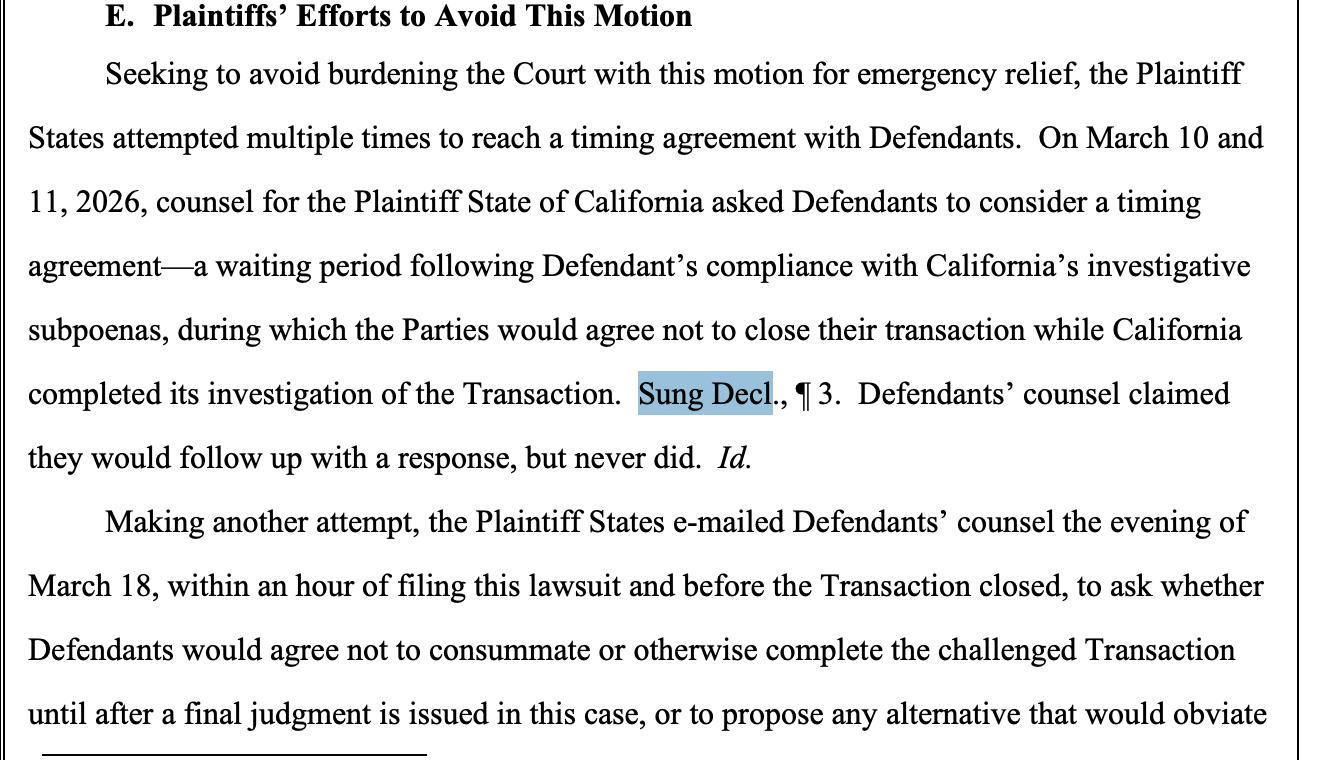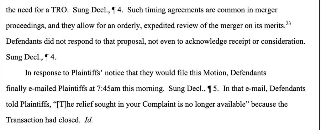 But something of particular note: on pages 16-17 of the states’ amended complaint, it becomes clear that Nexstar completely ignored the State AGs for 8 days, then ignored their lawsuit for another 18 hours, and then told the state AGs “The relief sought in your Complaint is no longer available.”
