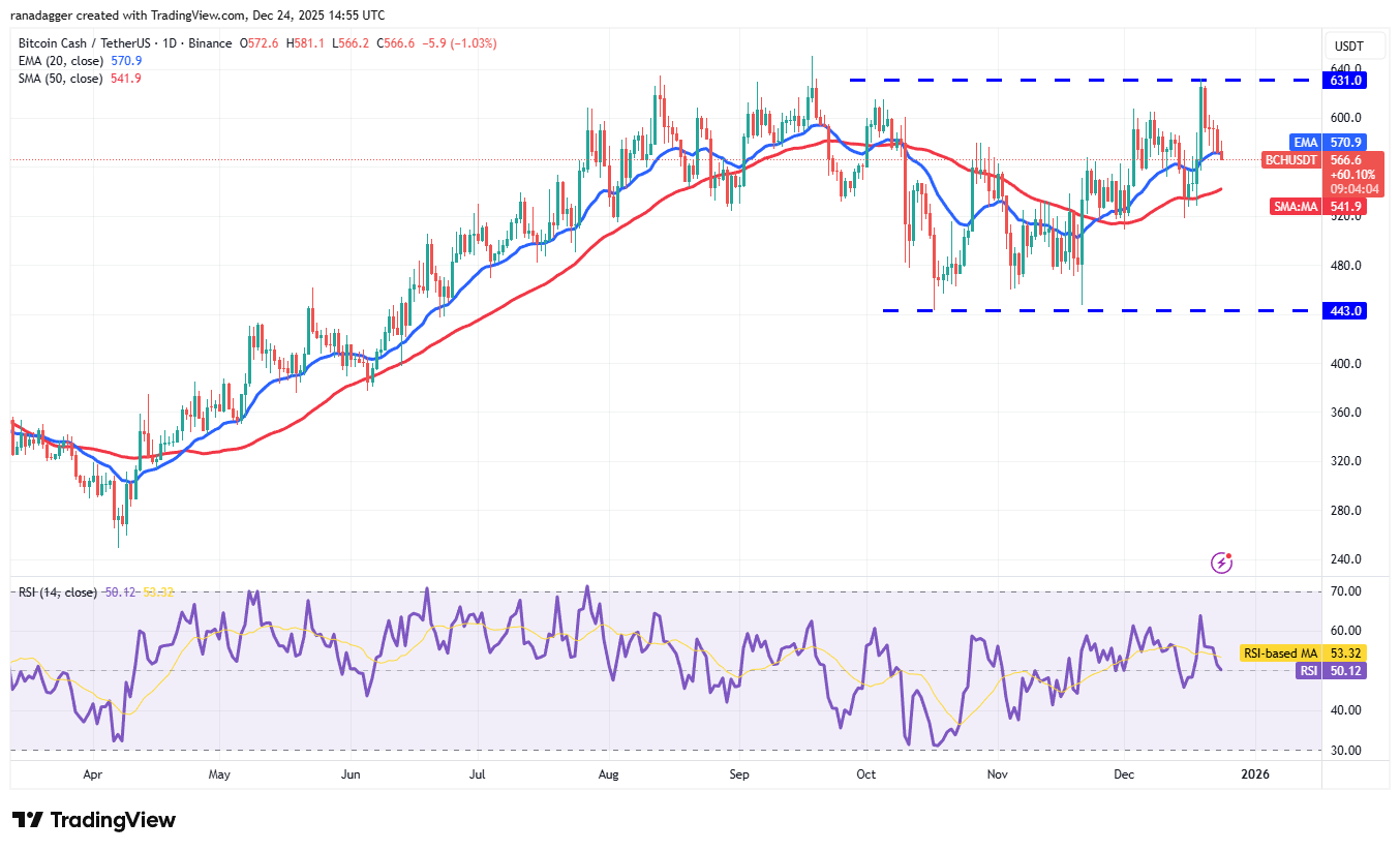 Bitcoin Cash (BCH) turned up from the 20-day EMA ($570) on Monday, but the bulls could not sustain the bounce.