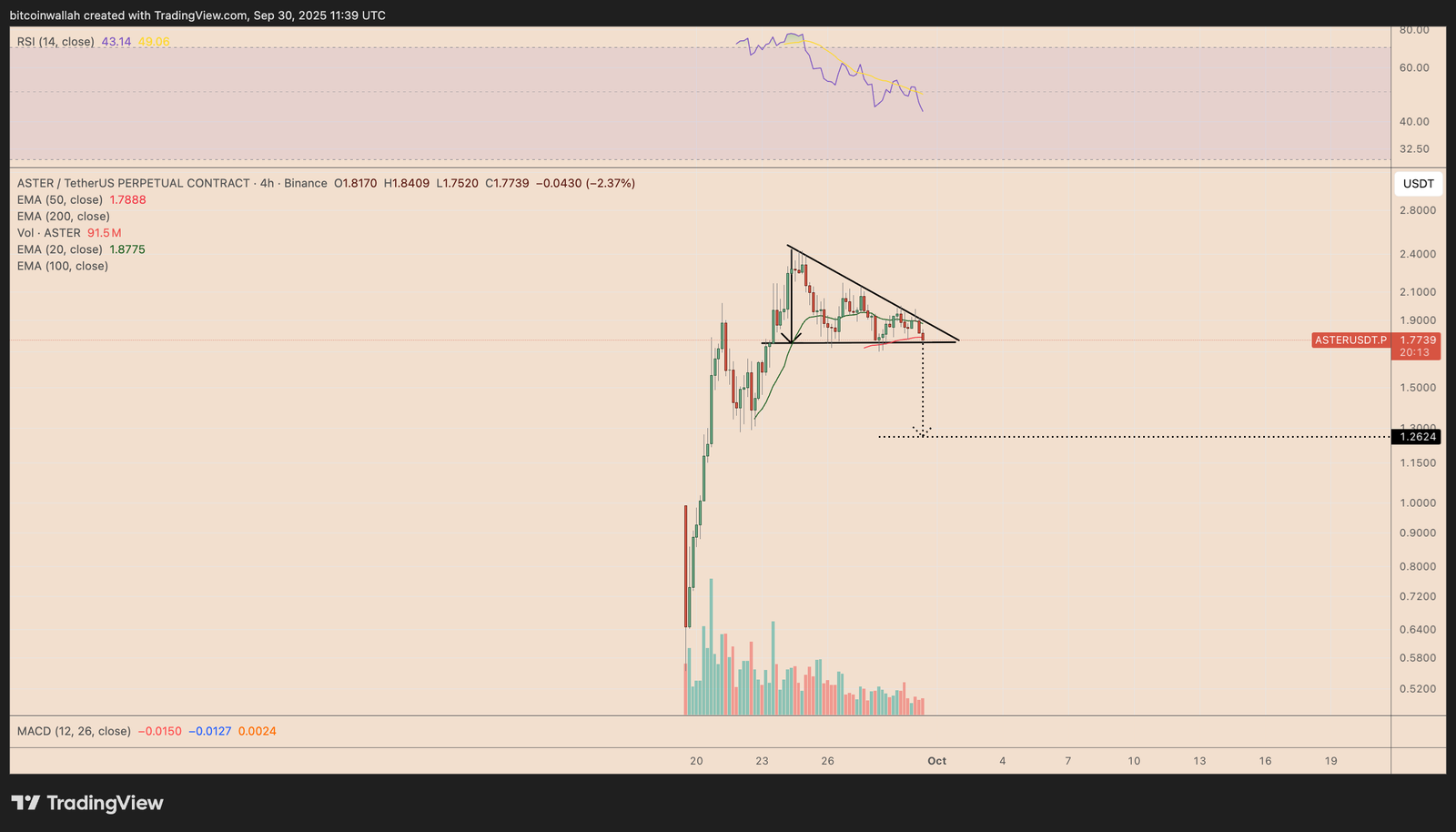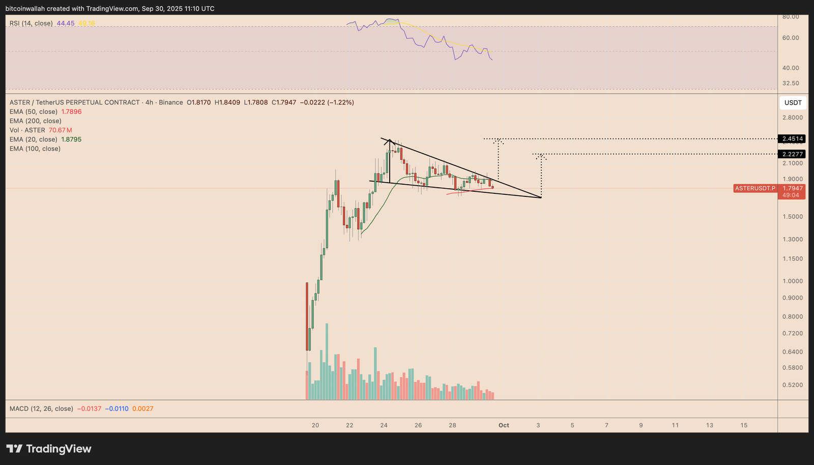Aster (ASTER) has corrected by more than 25% a week after hitting a record high at around $2.43, and was trading for $1.80 as of Sept. 30. Can this Binance-linked DEX token recover in October?