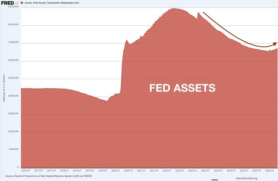 The Fed has begun adding to its balance sheet this year — a form of liquidity catalyst that traditionally benefits markets.