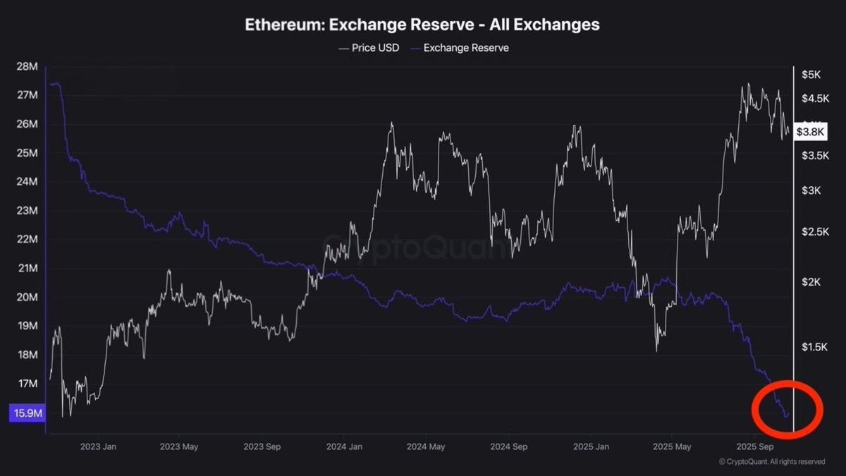 “More and more ETH is leaving exchanges every day. Exchange reserves just hit their lowest level in years,” he said in a Friday X post, adding: