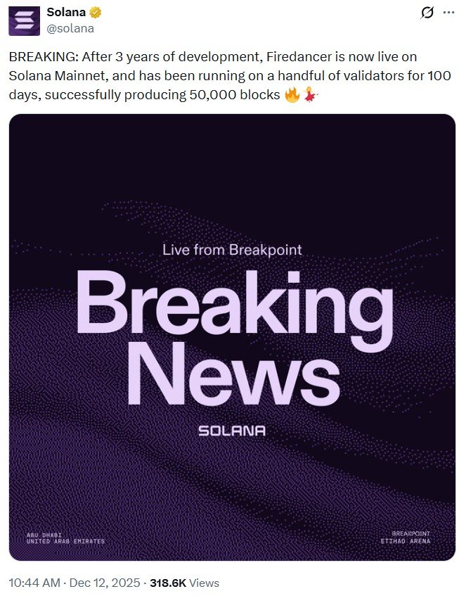Whether Solana can move beyond that reputation will depend largely on the success of its infrastructure upgrades. Next year, Solana is expected to advance its Firedancer validator client adoption, which proposes consensus changes and execution-layer improvements that aim to make the network more predictable and resilient.