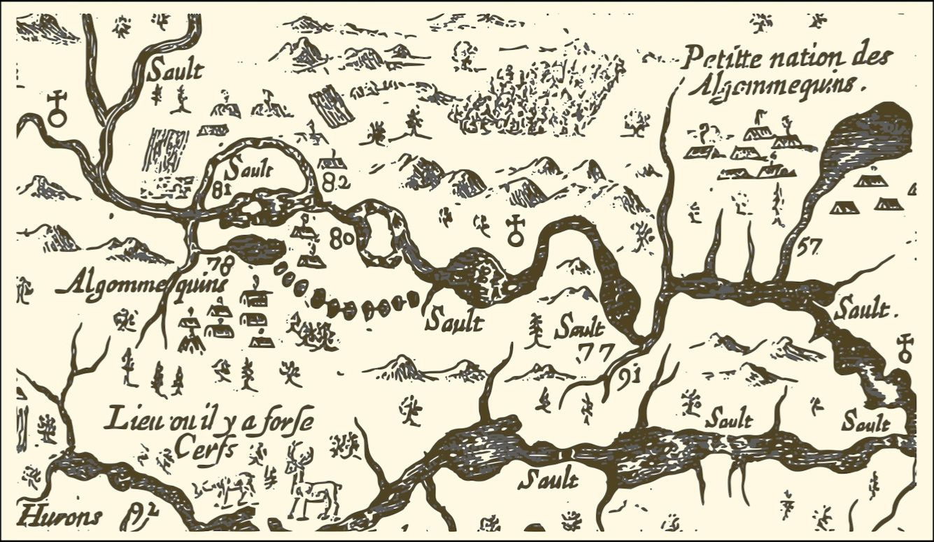 The summer’s major engagement took place between a group of about 300 Wendat and Algonquin warriors on one side, and a large raiding party of about 100 Oneida who’d come north in search of fur convoys. The Oneida were surrounded, and only a handful managed to escape. Eighty were taken prisoner.