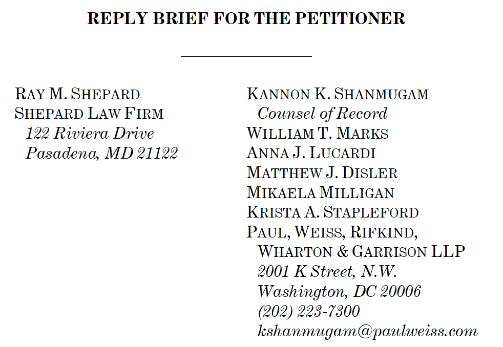 Why did Prelogar swoop in at the last minute? I don’t know. Perhaps there is a conflict? I checked the docket, and Shanmugan is on the brief for next week’s case of Cisco Systems v. Doe, though Chris Michel at Quinn Emanuel is counsel of record. Mere mortals may have trouble arguing two SCOTUS cases back to back, but Shanmugam has super advocacy skills. In 2024, he argued a case in February and another case in March. In 2021, he argued a case on November 10 and on November 30. In 2020, he argued a case on November 3 and on December 8 and on January 19. In 2018, he argued a case on October 29 and on November 7. And even if it was too much for Shanmugam to argue back-to-back, certainly there is someone else at Paul Weiss who could have picked up the case. There must be more to the story.