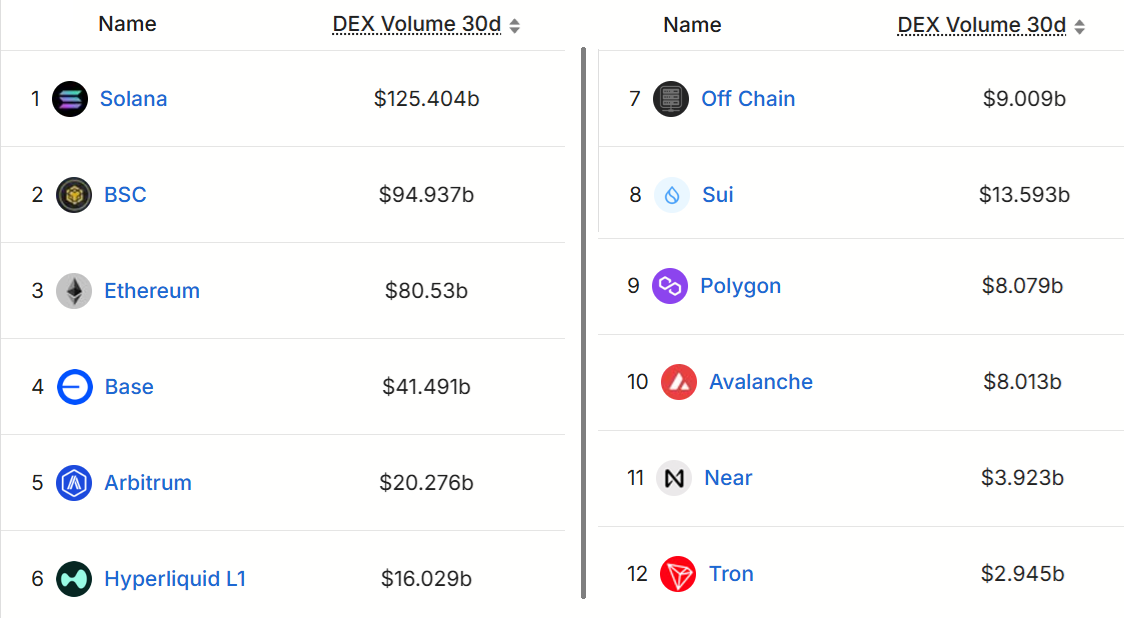 Deposits on the Ethereum network, measured by Total Value Locked (TVL), fell to a four-month low of $74 billion, a 13% drop from 30 days earlier. Activity on Ethereum decentralized exchanges (DEX) reached $17.4 billion in the past seven days, down 27% from the prior month. Ethereum remains the clear leader in deposits, but it faces tougher competition in trading volume.