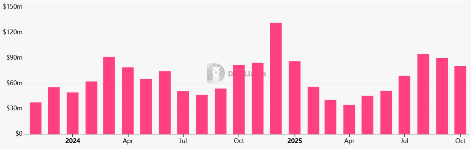 Ethereum decentralized applications (DApps) generated $80.7 million in revenue in October, an 18% decline from September. The decrease is particularly concerning for ETH holders, as lower onchain activity puts downward pressure on the native staking yield.