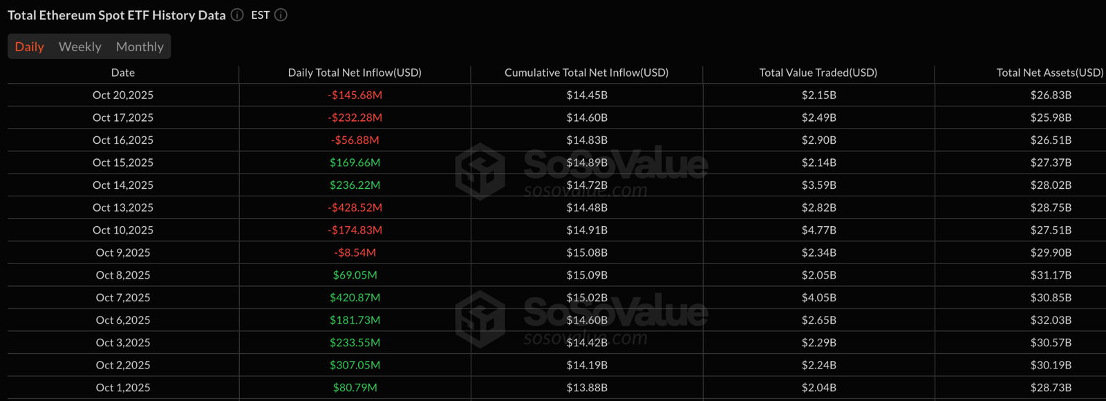 Monday alone saw Ether ETFs shed $145.7 million, bringing total net outflows over the past eight days to $640.5 million.
