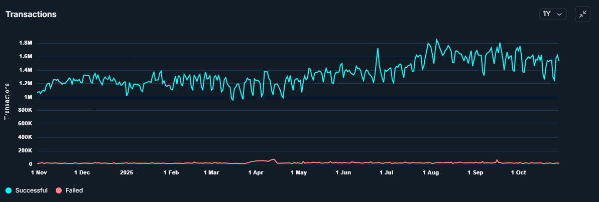 Daily transactions on the network rose to 1.6 million on Tuesday, marking a near one-month high, last seen at the beginning of October before the record $19 billion liquidation event.